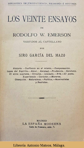 Primera edición en castellano de sus famosos ensayos aparecidos en ingles con el título Essays: First Series (1841) y Second Series (1844).