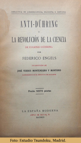 1913- Anti-Dühring o la revolución de la ciencia de Eugenio Dühring. Trad. de José Verdes Montenegro. BJFH, n. 553.