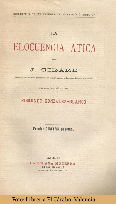 1910- La elocuencia ática. Trad. de Edmundo González Blanco. BJFH, n. 482.